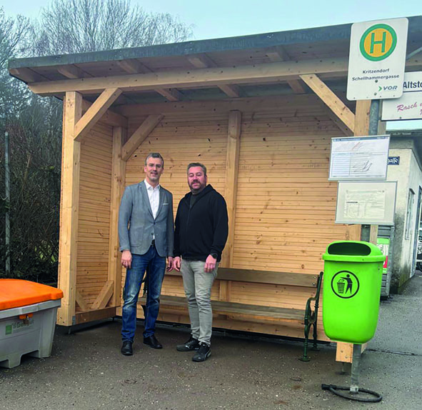 Die Haltestelle an der Hauptachse durch Kritzendorf wird von zahlreichen Bussen pro Tag angefahren. Mit dem neuen, Holzwartehaus erhalten Fahrgäste einen neuen verlässlichen Witterungsschutz: Regen, Wind und im Sommer direkte Sonneneinstrahlung werden abgehalten, sodass das Warten auf den Bus sich für alle Fahrgäste angenehmer gestaltet.