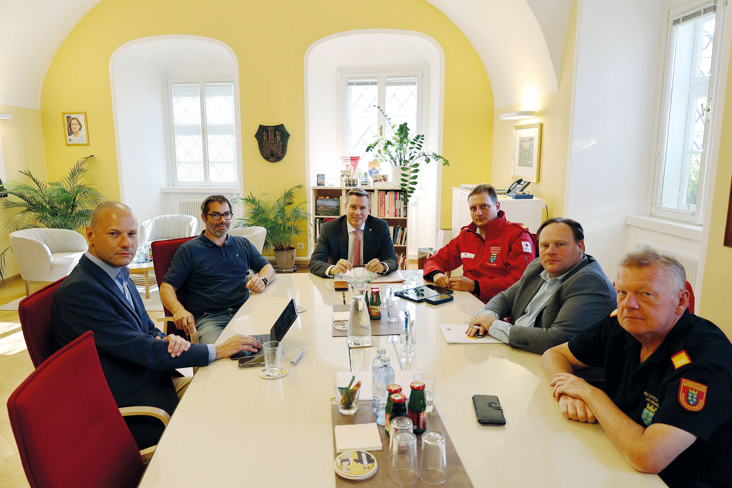 Anlässlich der angekündigten Neuausrichtung der Rettungslandschaft in Niederösterreich hat Bürgermeister Christoph Kaufmann Bezirksstellenleiter Thomas Wordie und Kommandant Flo Havel als Vertreter des Roten Kreuzes, den ärztlichen Leiter des Landesklinikums Klosterneuburg, Dr. Herbert Huscsava, den Kommandanten des Feuerwehrabschnitts Klosterneuburg, Josef Angelmayer, sowie den Geschäftsführer von Notruf NÖ, Dr. Christian Fohringer, zu einem Runden Tisch ins Rathaus eingeladen.